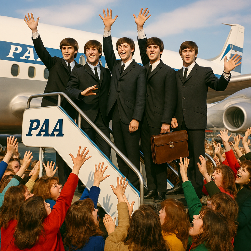 1964 — The Beatles are met by an estimated 25,000 screaming fans when they arrive at Kennedy Airport in New York for their first U.S. tour.